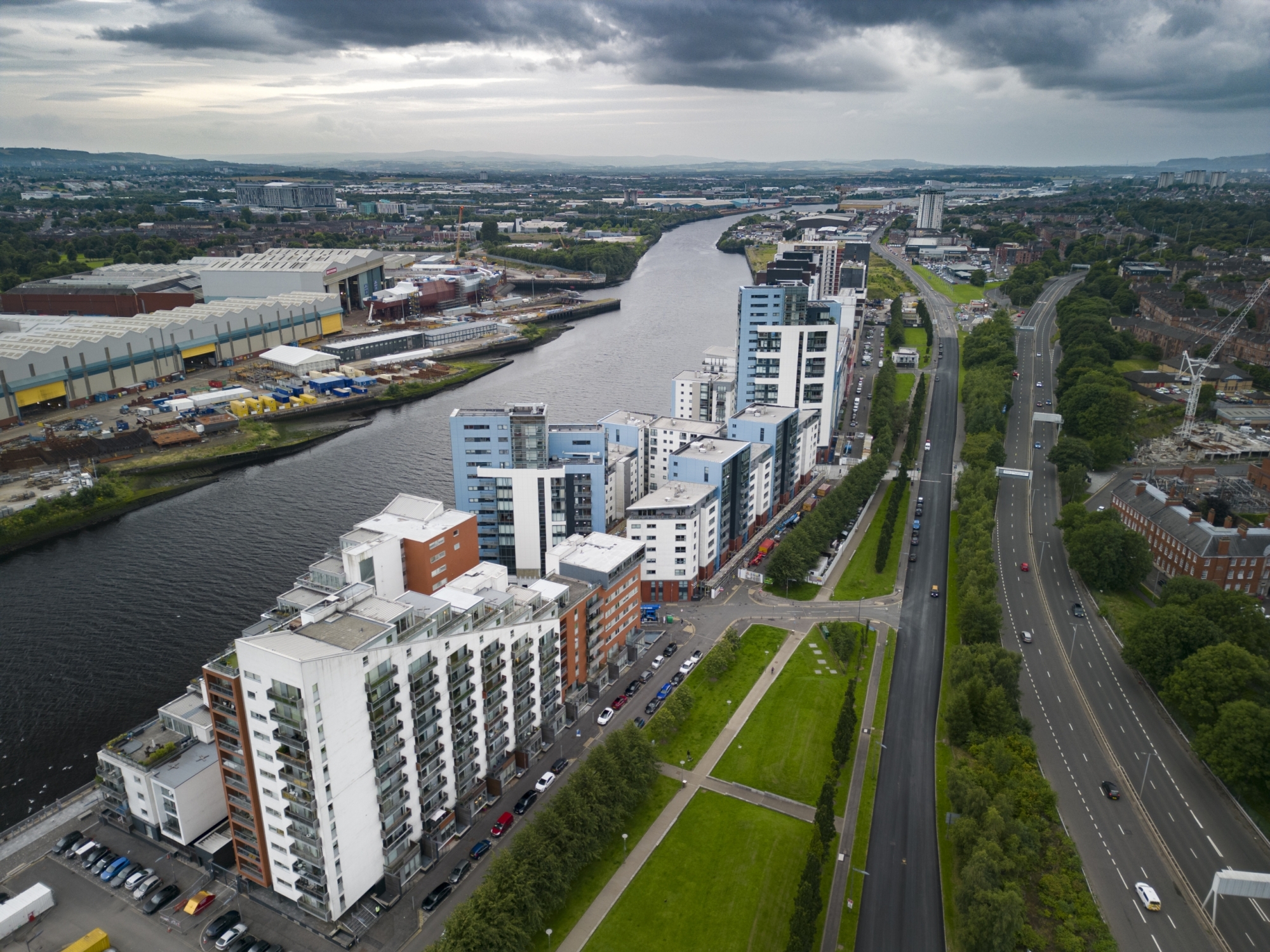 The internal accommodation consists of: on level 1: hallway with storage off, 3 double bedrooms (all with fitted wardrobes and two en-suite) and family bathroom. On upper level: the open plan lounge and fitted modern kitchen/dining area stretch the full length of the apartment with a north & south facing private terrace with views to the West End & the Ship Yards further complementing this modern apartment. Further benefits include a utility room, GCH, double glazing, security entry system, concierge, and residents parking space.